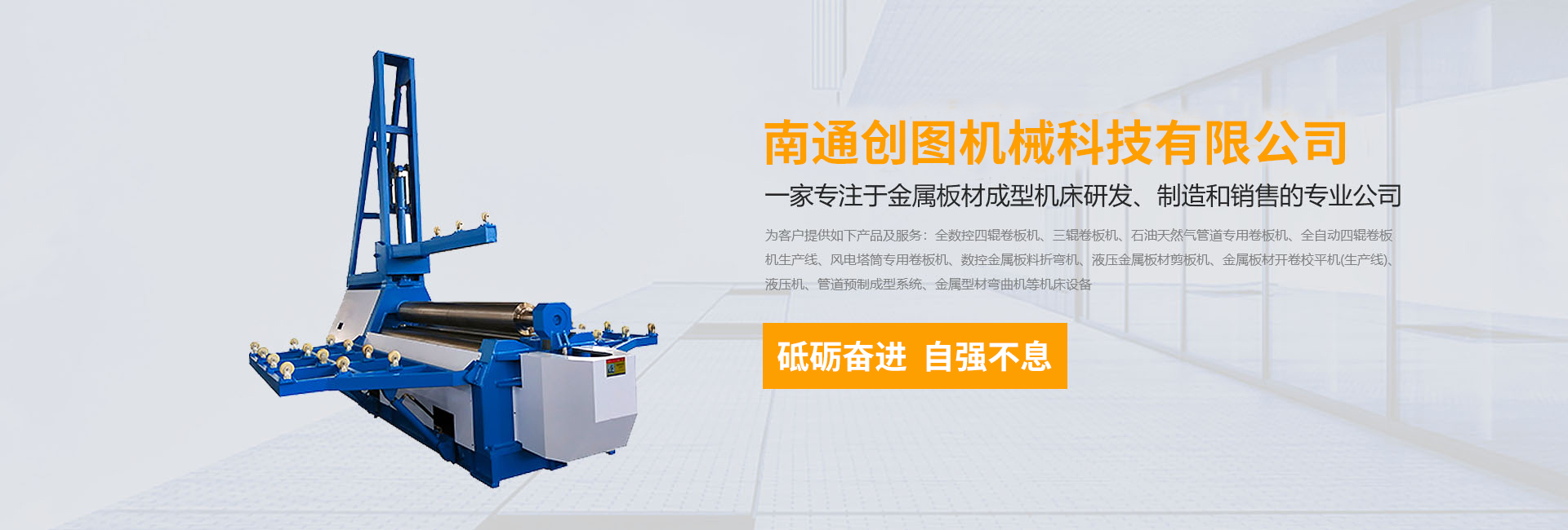 數(shù)控折彎機(jī),剪板機(jī),刨槽機(jī),全數(shù)控四輥卷板機(jī)、三輥卷板機(jī)、石油天然氣管道專用卷板機(jī)、全自動四輥卷板機(jī)生產(chǎn)線、風(fēng)電塔筒專用卷板機(jī)、金屬板材開卷校平機(jī)(生產(chǎn)線)、液壓機(jī)、管道預(yù)制成型系統(tǒng)、金屬型材彎曲機(jī)等機(jī)床設(shè)備,公司以精湛的設(shè)計(jì)能力,雄厚的加工制造能力,完善的售后服務(wù)能力,產(chǎn)品暢銷國內(nèi)20多個(gè)省、直轄市,并遠(yuǎn)銷德國、阿根廷、俄羅斯、印尼、伊朗等30多個(gè)國家和地區(qū)。